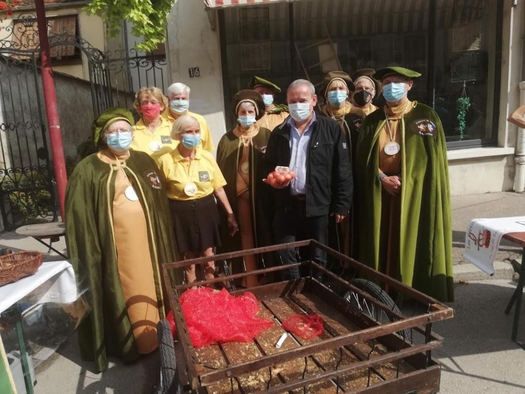 Dimanche 20 septembre 2021 au marché d'AUXONNE notre confrérie était présent avec Monsieur le Maire d'Auxonne 200 kg d'Oignon on été distribuée